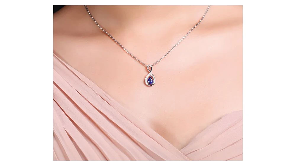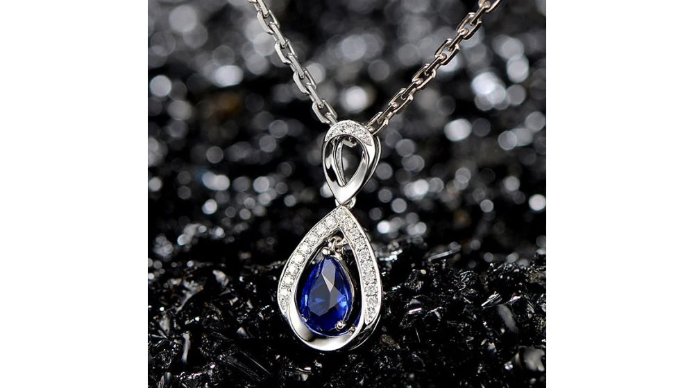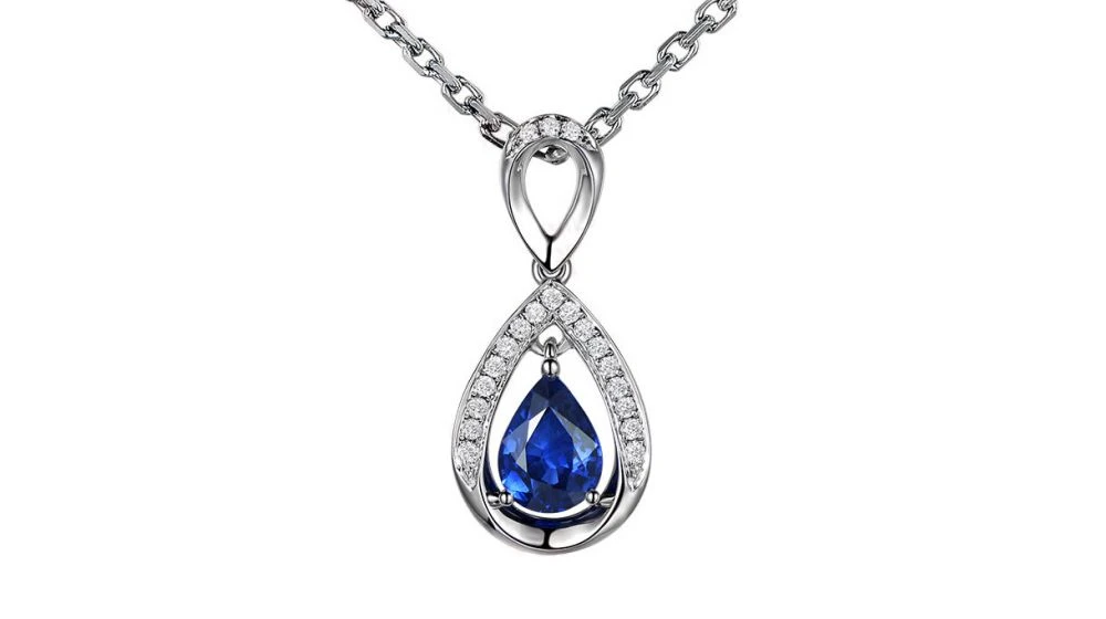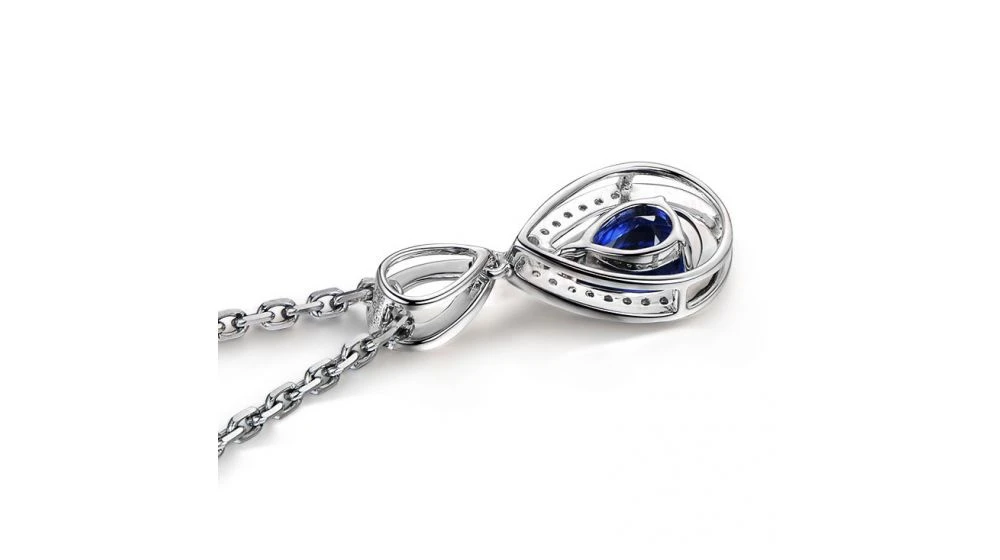 Pendeloque Or Blanc 18 Carats – Saphir Et Diamants En Poire