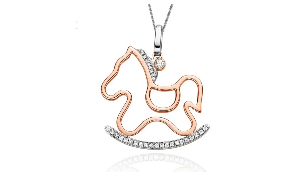 Pendentif 2 Ors – Cheval Avec Crinière Et Bascule En Diamants