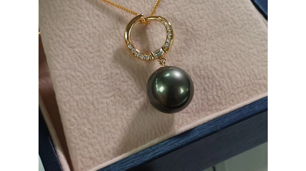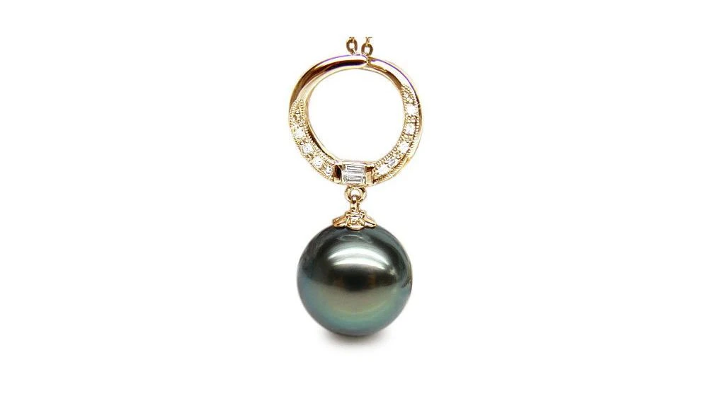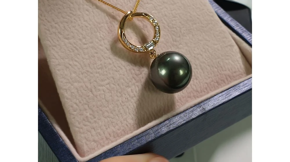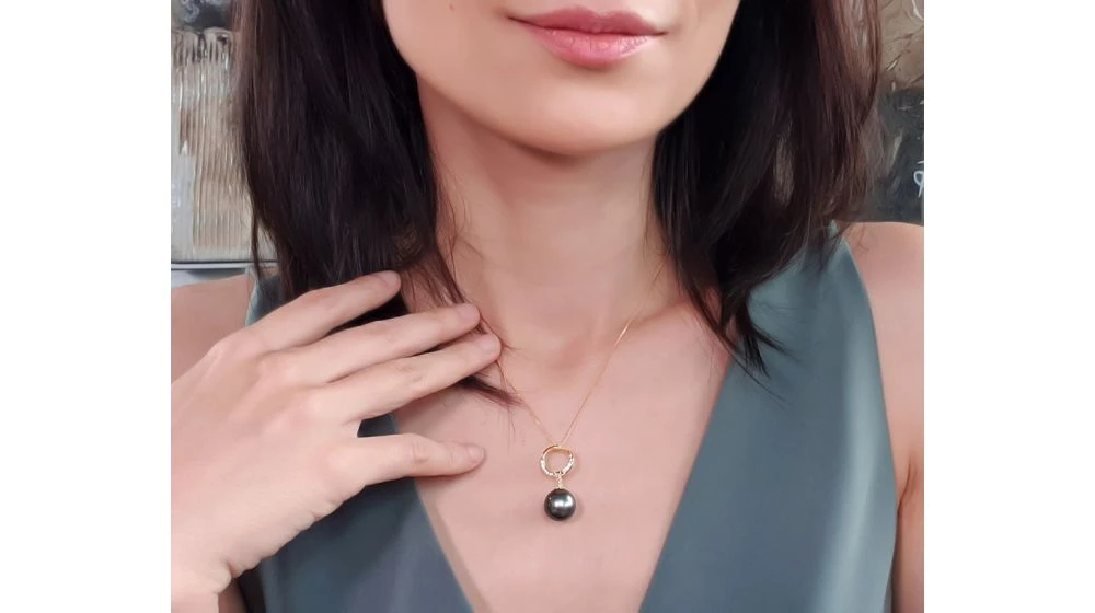 Pendentif Circle – Perle Tahiti Noire, Bleue Verte – Or Jaune, Diamants