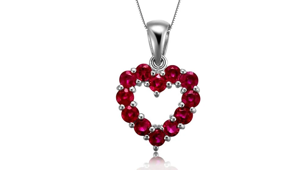 Pendentif Coeur – Or Blanc Et Rubis De Birmanie