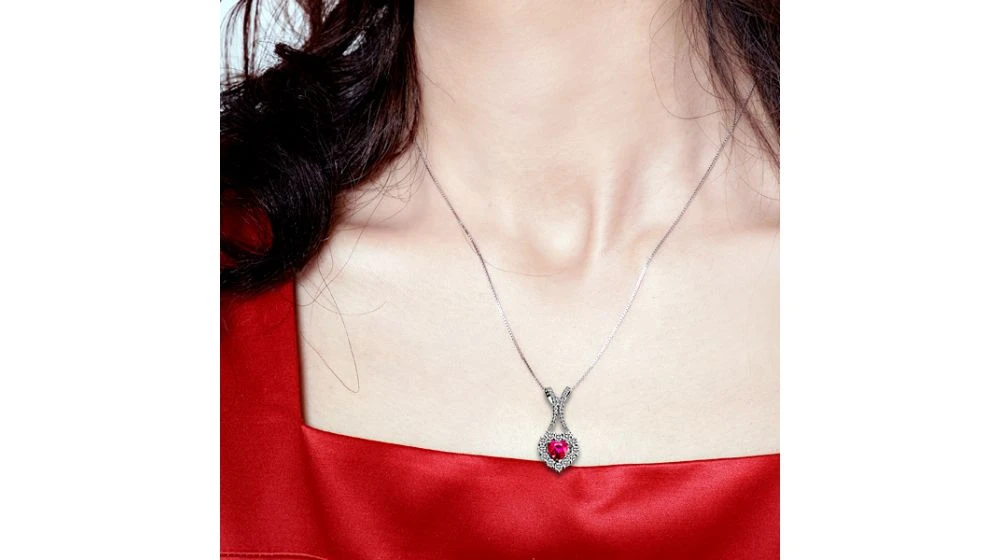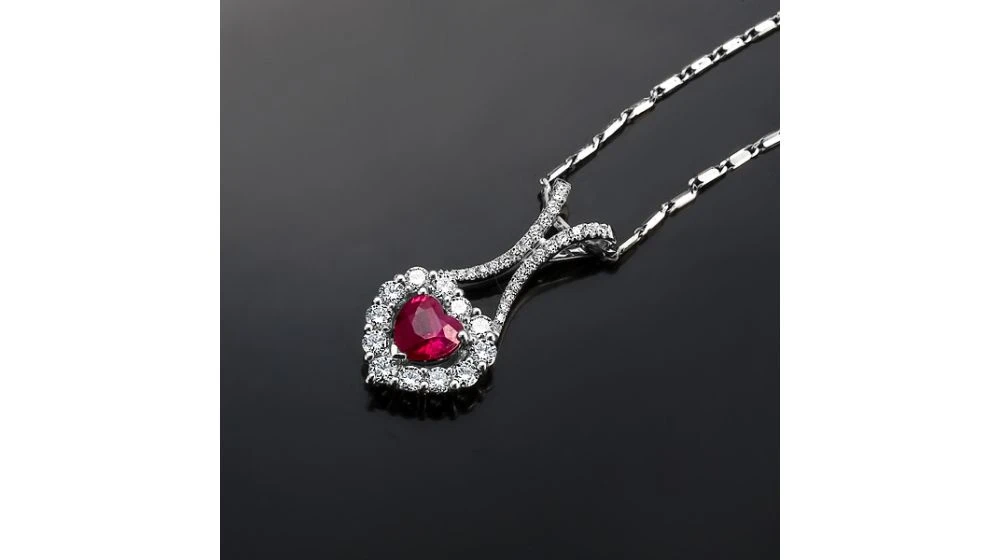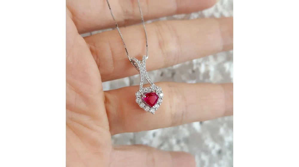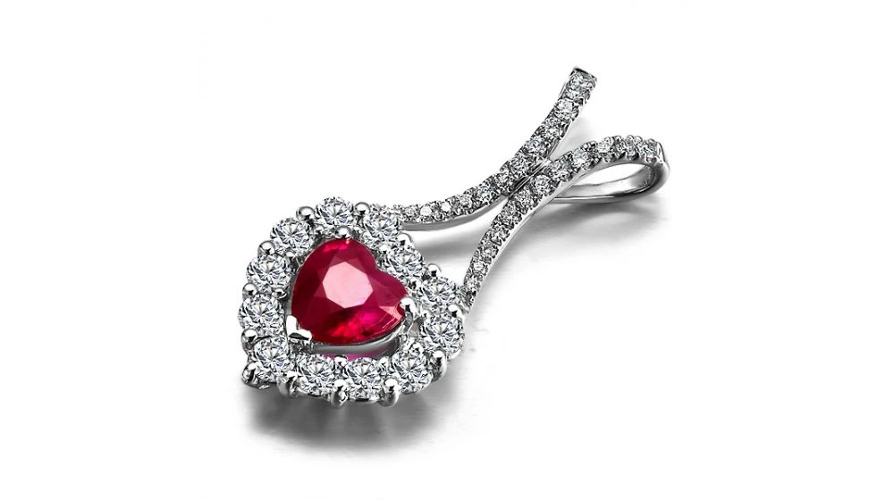 Pendentif Coeur Or Blanc – Rubis Et Diamants En Pendeloque