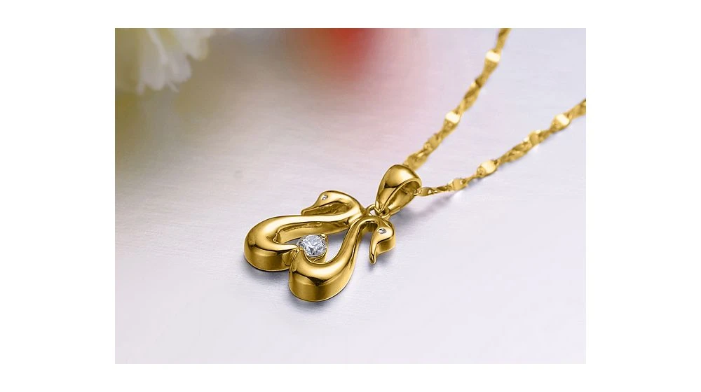Pendentif Couple De Cygnes – Diamant 0.10ct, Or Jaune