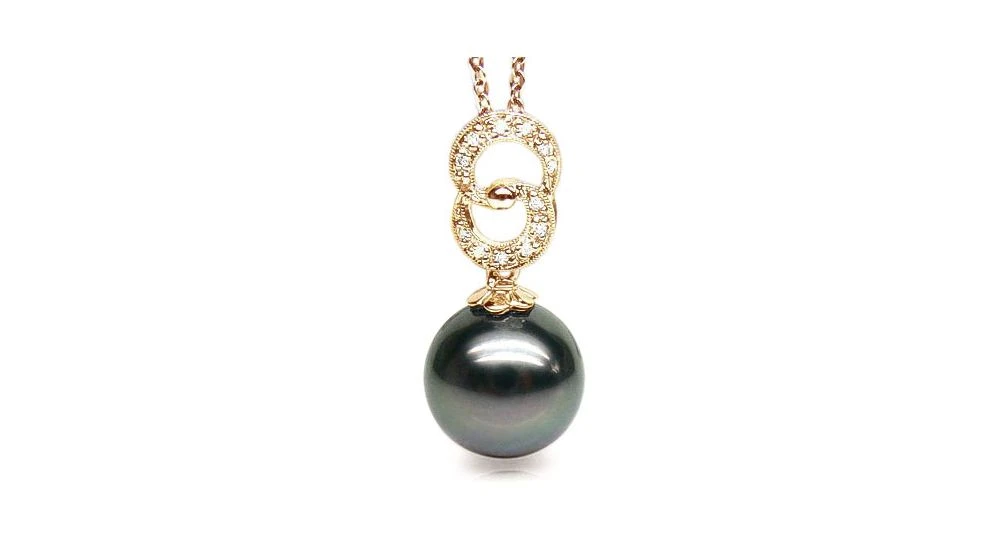 Pendentif élégance – Anneaux 8 – Perle De Tahiti – Or Jaune, Diamants