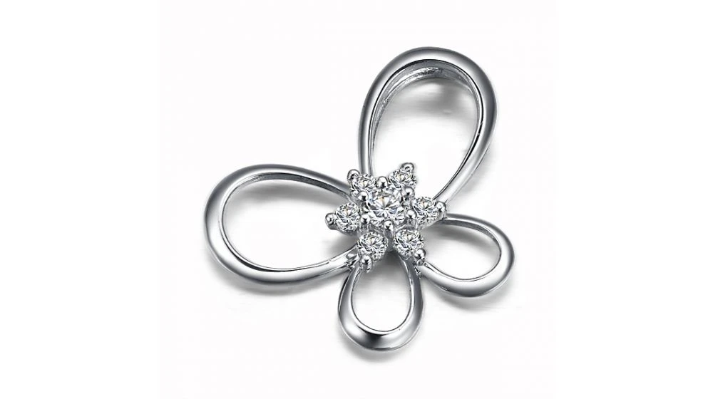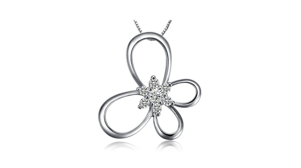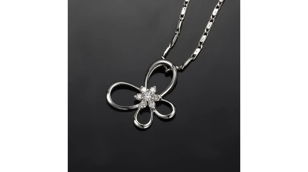 Pendentif Fleur En Papillon – Or Blanc 18 Carats – Diamants 0.10ct