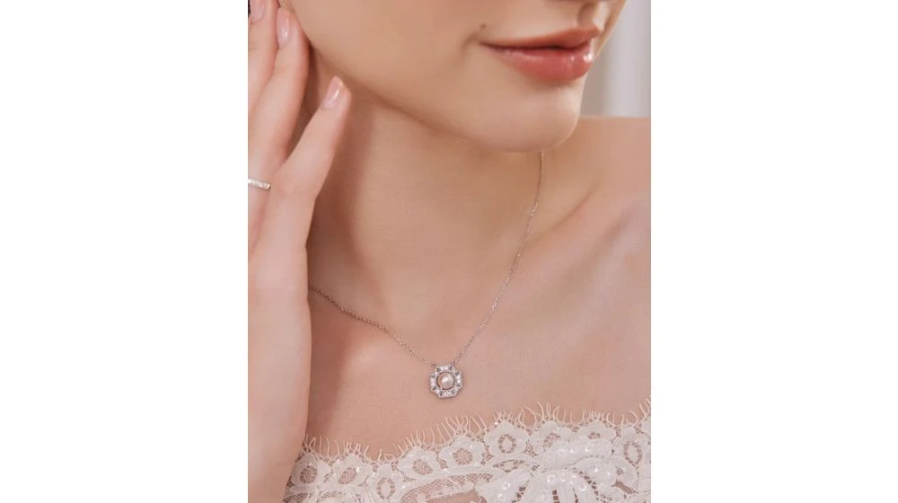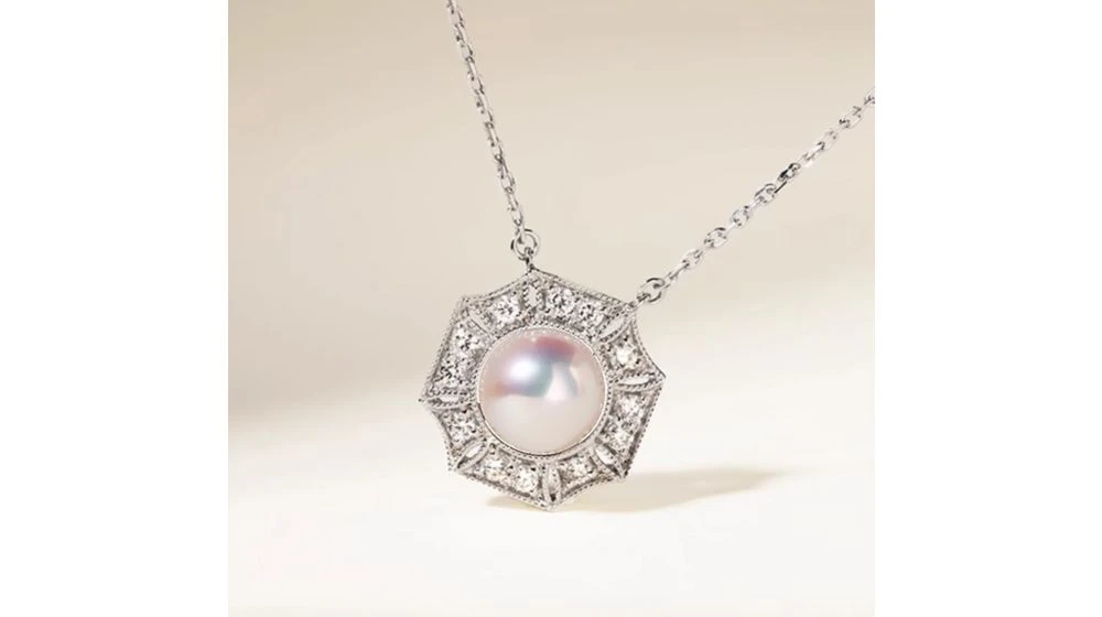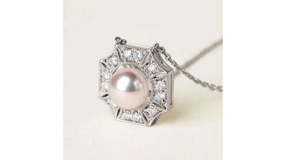 Pendentif Géométria Préciosa – Perle Akoya, Or Blanc, Diamant