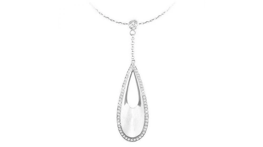 Pendentif Goutte D’eau Or Blanc – Diamants Clos Et Grains 0.439ct