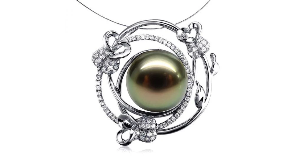Pendentif La Vie En Rose – Perle De Tahiti – 3 Roses Or Blanc, Diamants
