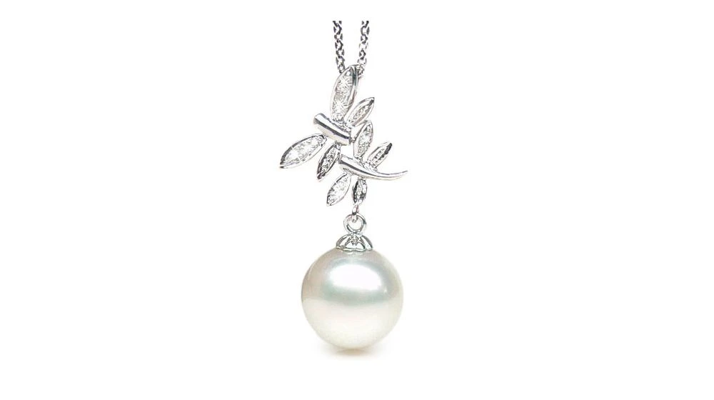 Pendentif Libellules – Perle D’Australie Blanche – Or Blanc, Diamants