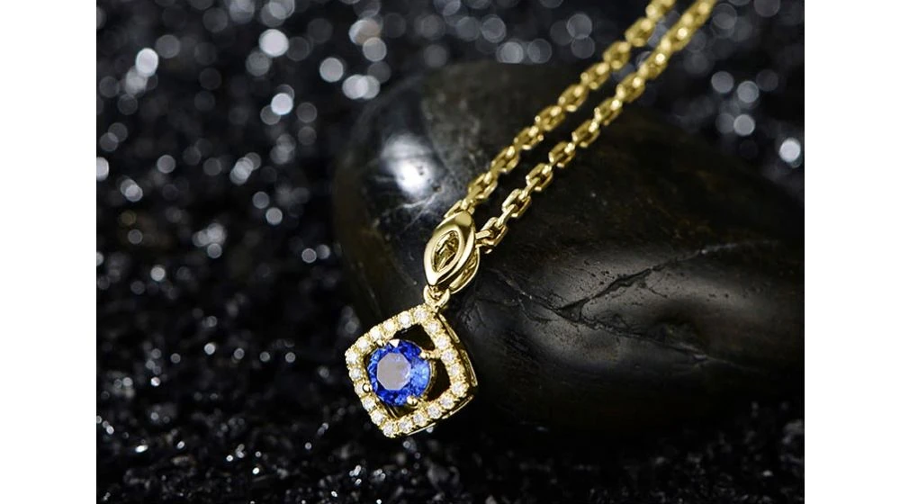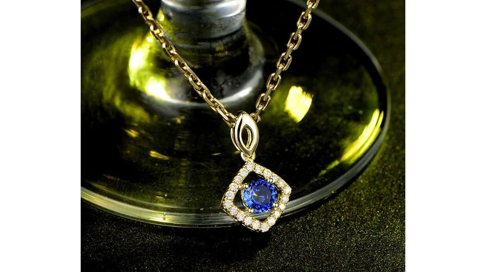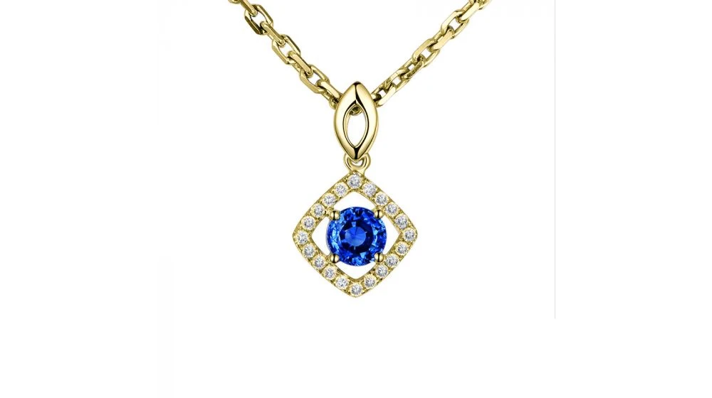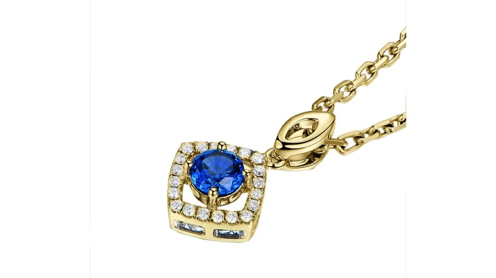 Pendentif Losange Or Jaune, Saphir Et Diamants