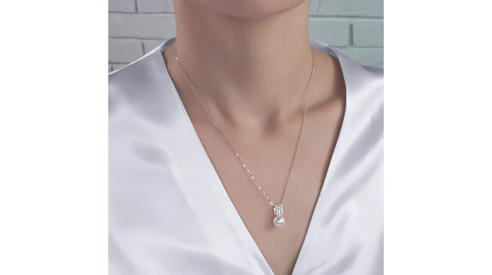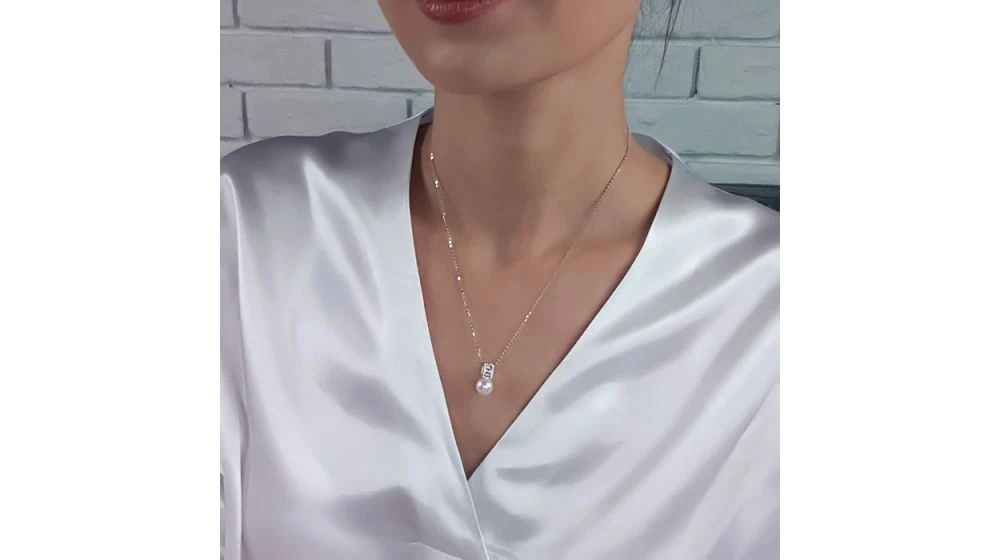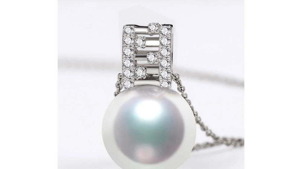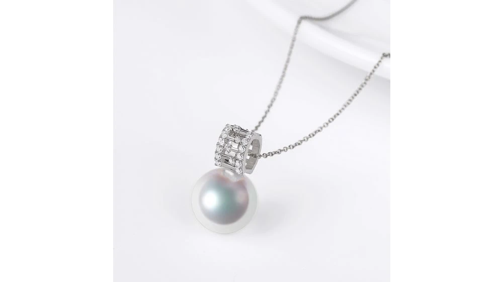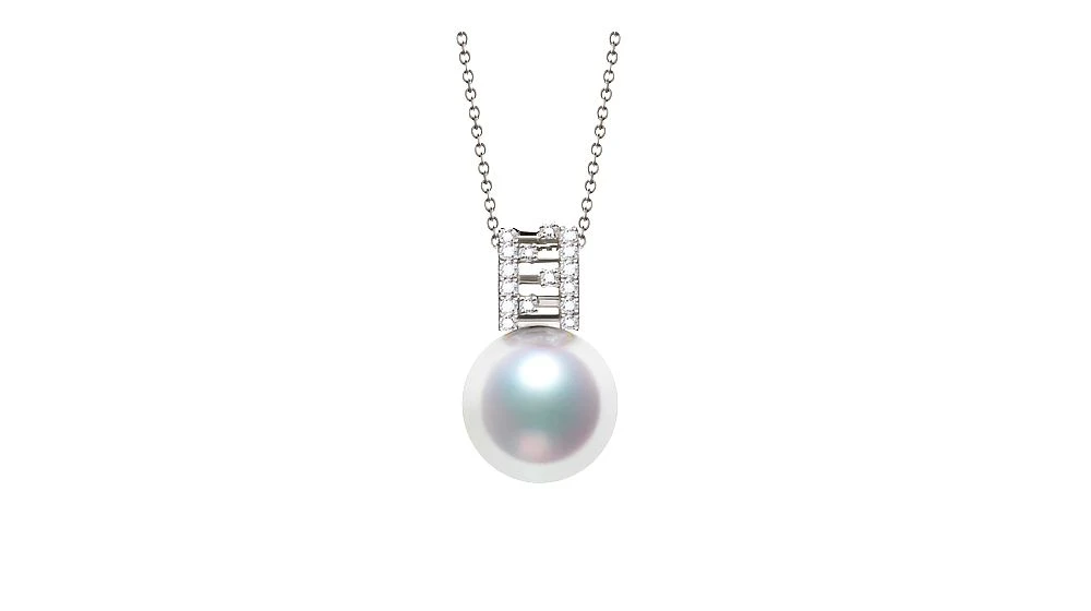 Pendentif Mikiko Perle Akoya Du Japon. Or Blanc, Diamants