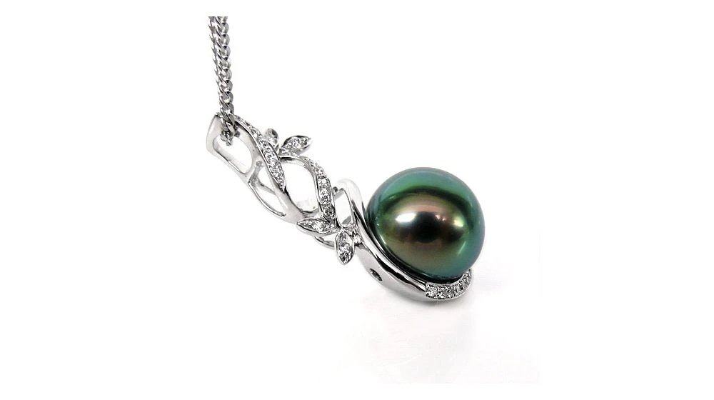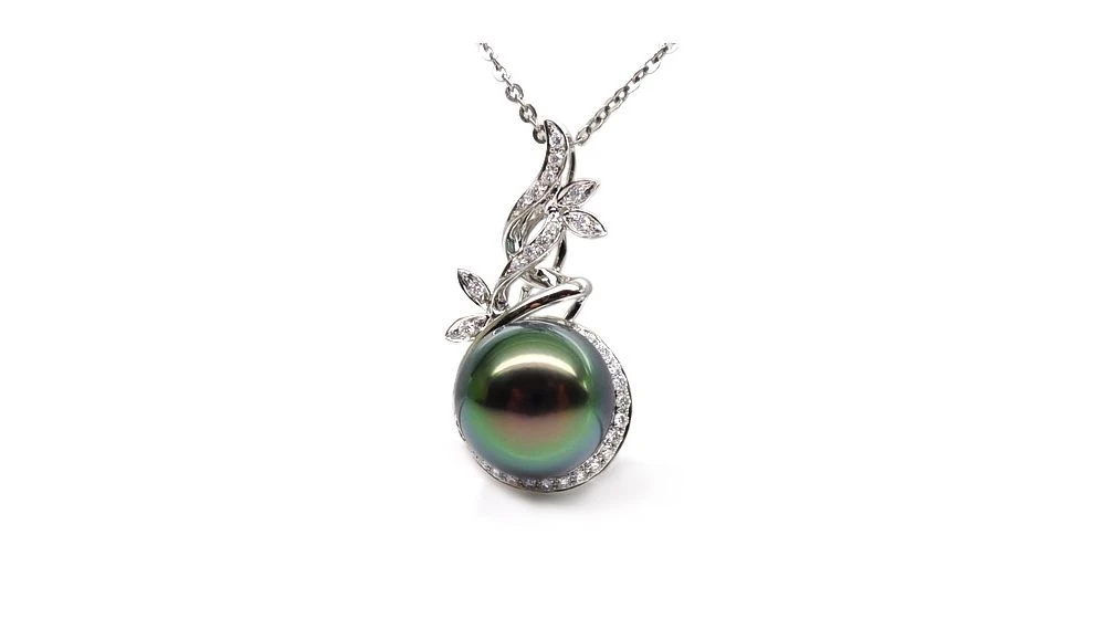 Pendentif Nature – Branche, Feuillage – Perle De Tahiti – Or Blanc