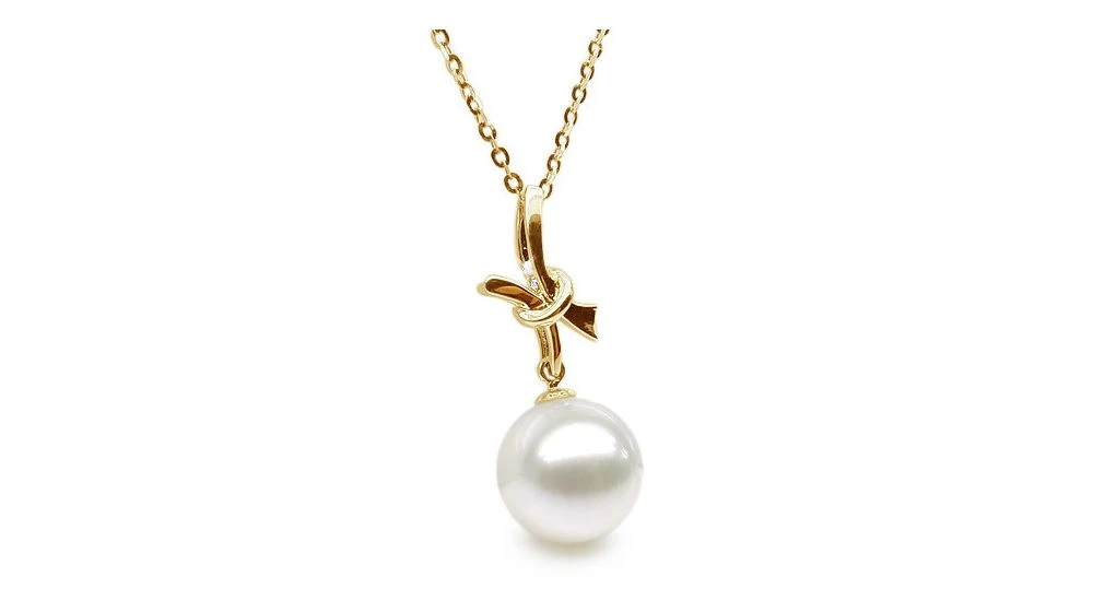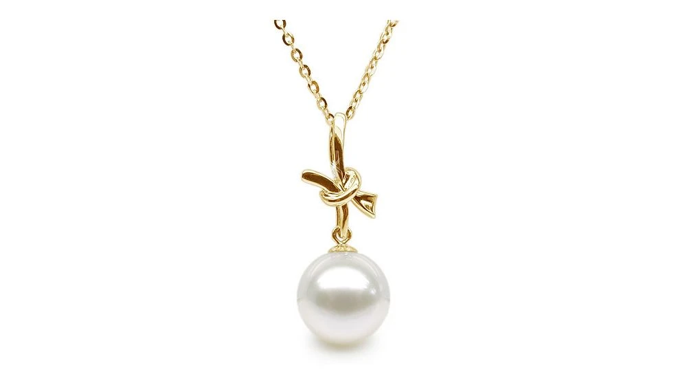 Pendentif Noeud En Or Jaune – Perle De Culture Eau Douce Blanche