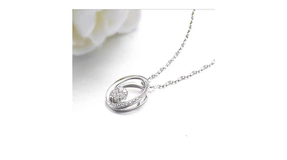 Pendentif O – Fleur Préservée – Or Blanc, Diamants 0.19ct