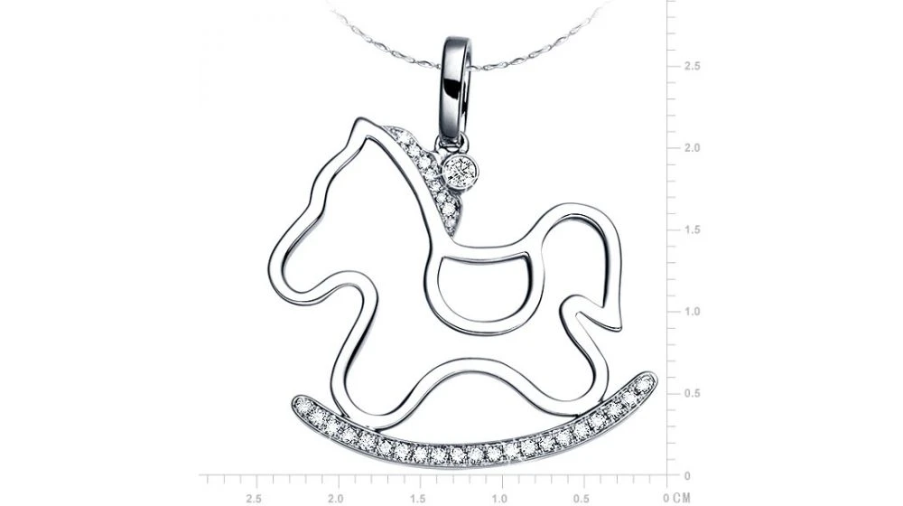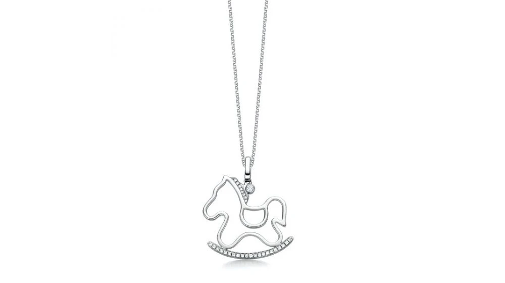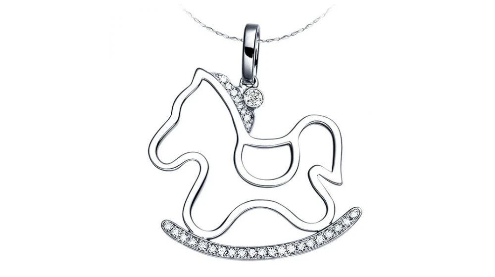 Pendentif Or Blanc Diamants Du Cheval à Bascule – Création Espiègle