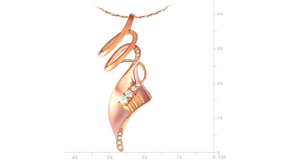 Symbole de l'esprit, ce pendentif est une allégorie à l'élément de l'air, une émanation du souffle du vent. Composé d'or rose 18 carats, ce bijou comporte un sertissage de 12 diamants pour un poids total de 0.14 carat.