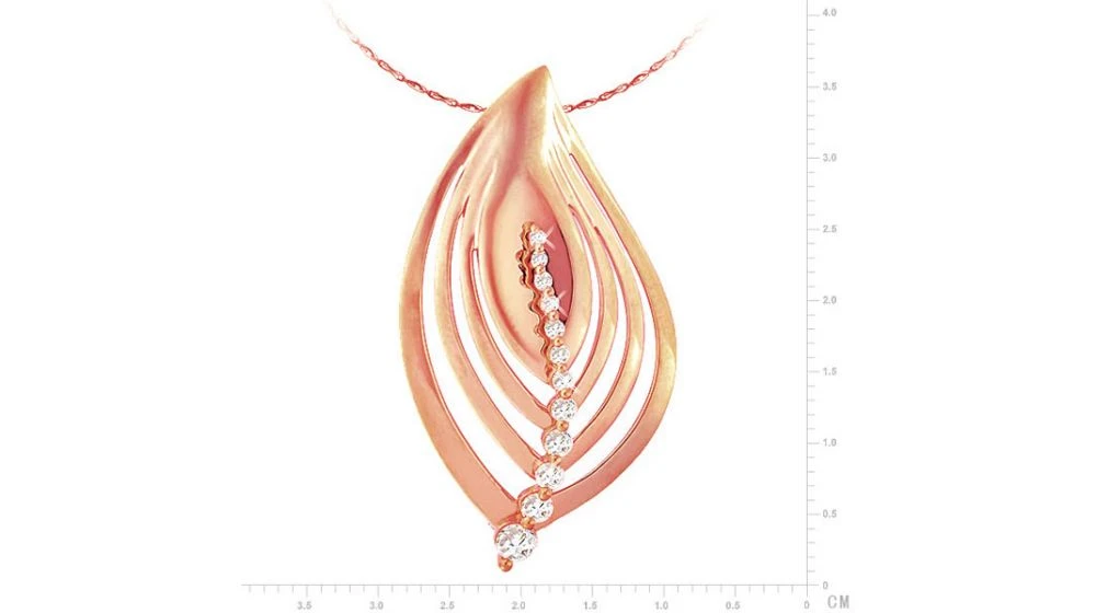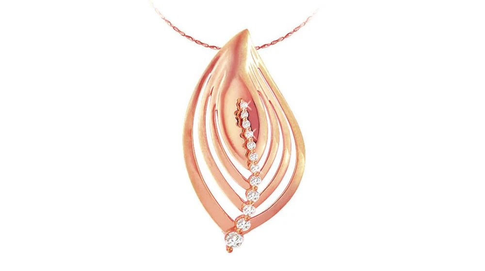 Pendentif – Or Rose – Feuille – Diamants 0.29ct