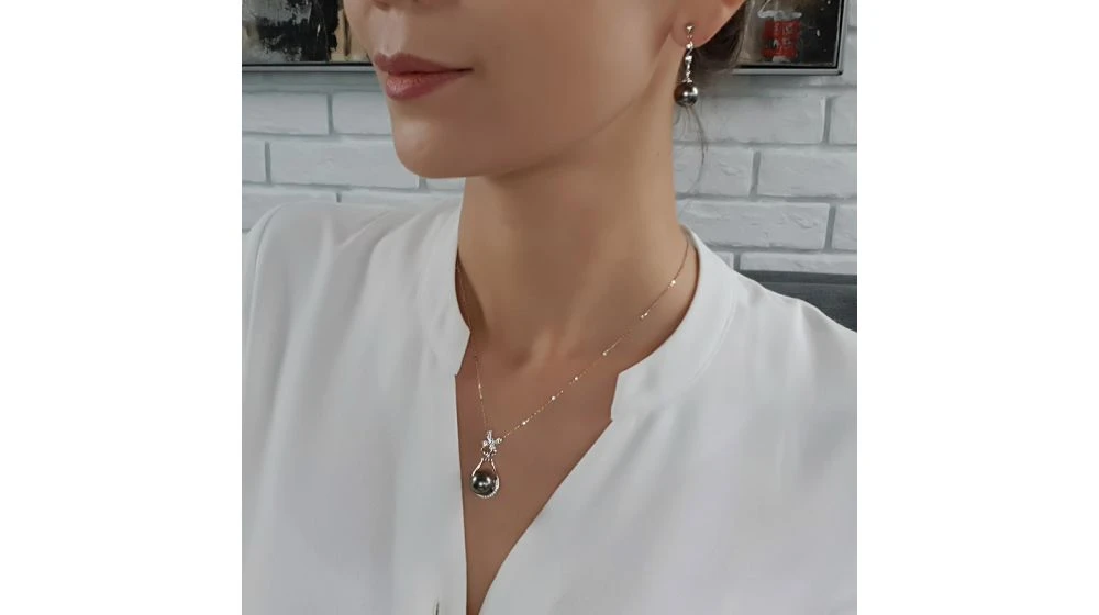 La vie est chaleureuse et belle chez l'être aimée. En espiègle messager de l’amour, notre pendentif Vol des papillons délivre un message poétique. En métal or jaune 18 carats, Il est représenté par deux papillons dont l'un est pavé de 19 diamants. La base du pendentif met en valeur une perle de Tahiti noire aux tons paons aubergines. La perle mesure entre 11 et 12mm de diamètre et propose une qualité top GEMME.