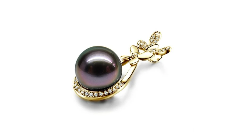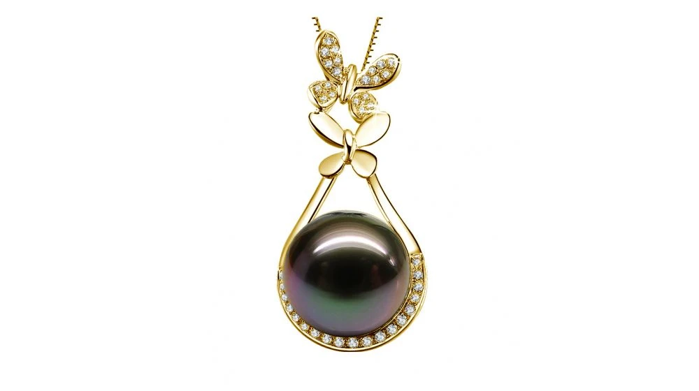 Pendentif Papillon – Perle De Tahiti Noire – Or Jaune, Diamants