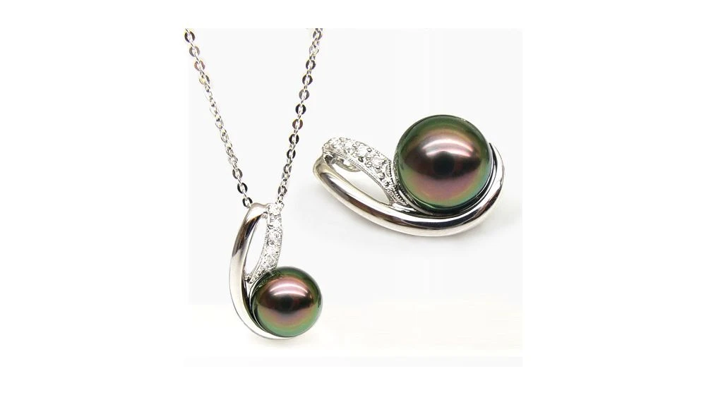 Pendentif Perle De Tahiti Noire – Orient Paon – Or Blanc, Diamants