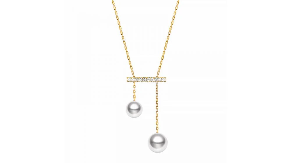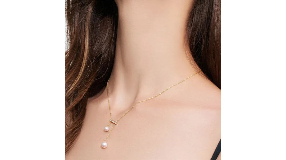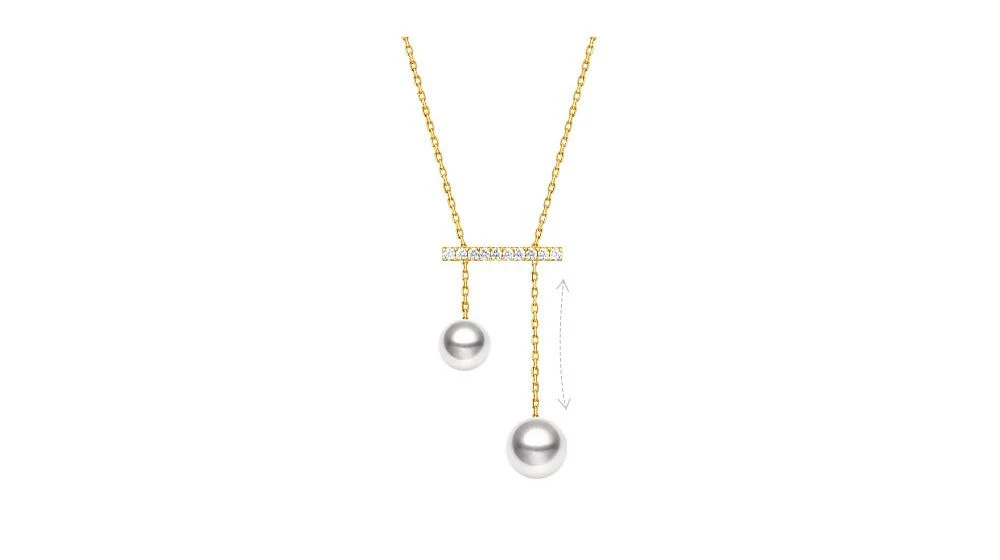<p>Deux pendentifs en un. Une chaine en <span style="color: #ffcc00;"><strong>or jaune</strong></span> est dotée d’une barrette pavée de <span><strong>11</strong></span> diamants de <span><strong>0.11ct</strong></span>. Cette dernière nous donne accès à deux splendides perles d’Akoya. L’une d’un diamètre <span><strong>7/7.5mm</strong></span> et l’autre de <span><strong>8/8.5mm</strong></span> <em>(diamètre personnalisable jusqu'à 7.5/8mm + 8.5/9mm).</em> </p> <p>Réajustable, ce collier pendentif vous permet d’étendre la chaine afin d’obtenir un style chic et moderne, le bijou idéal à mettre en soirée. Ou de la raccourcir et de vous retrouvez avec un nouveau pendentif, élégant, simple et raffiné, celui-ci est parfait pour une cérémonie de mariage. </p>