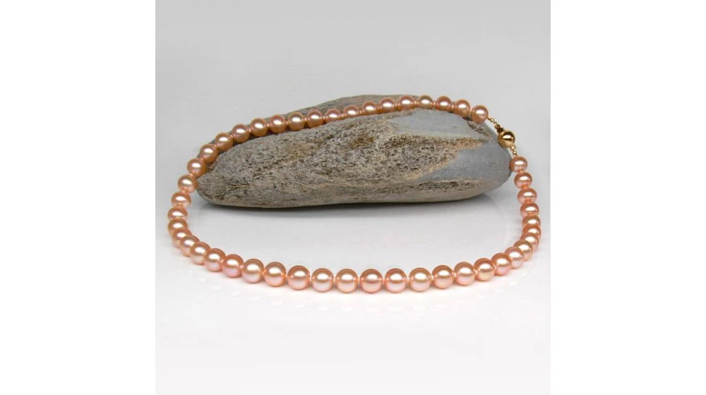 Collier en perles de culture d'eau douce roses. Le diamètre des perles est compris entre 7.5 et 8mm. Les perles sont bien rondes, de qualité AAA. Le lustre des perles reflète remarquablement la lumière naturelle. Ces perles sont de qualité supérieures. Cette sélection « AAA » a demandé une grande rigueur en raison de son faible écart de diamètre (0.5 mm seulement). Enfilage : Perles montées sur un double fil de soie. Nouage soigneux entre elles pour éviter toute friction. (Fil spécialement conçu pour les perles)