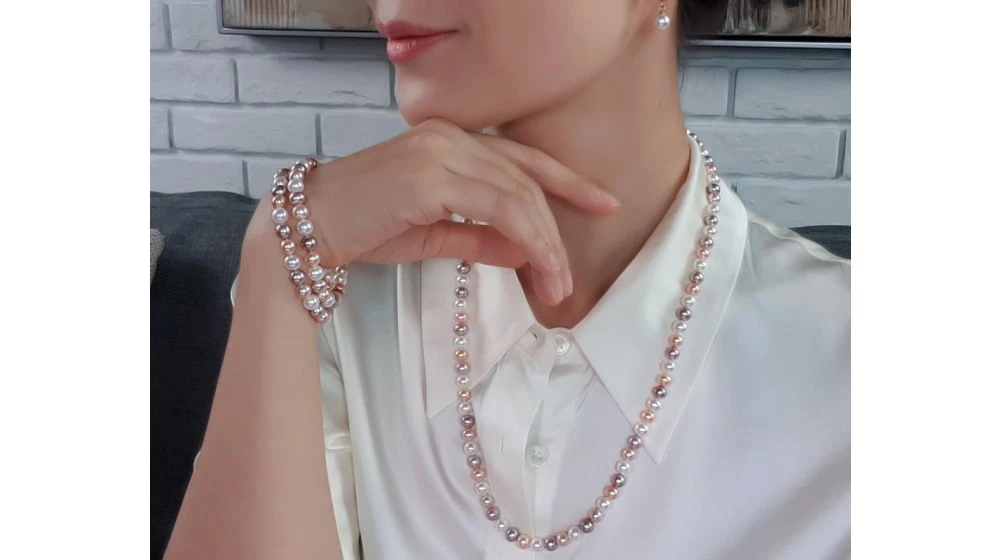 Roma Bracelet Double Perles Eau Douce Multicolores – 6.5/7mm – AAA