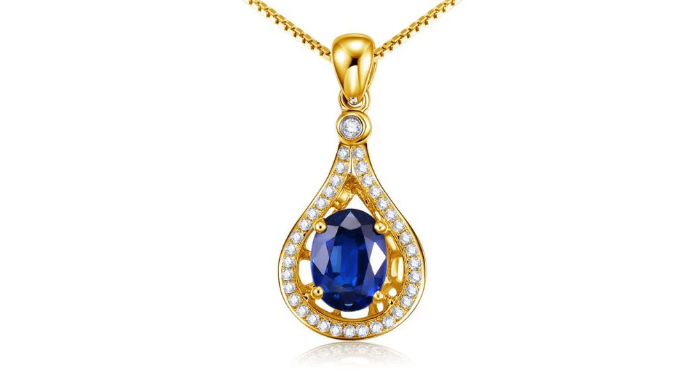 Saphir Et Diamant Sur Or Jaune – Pendentif Oval