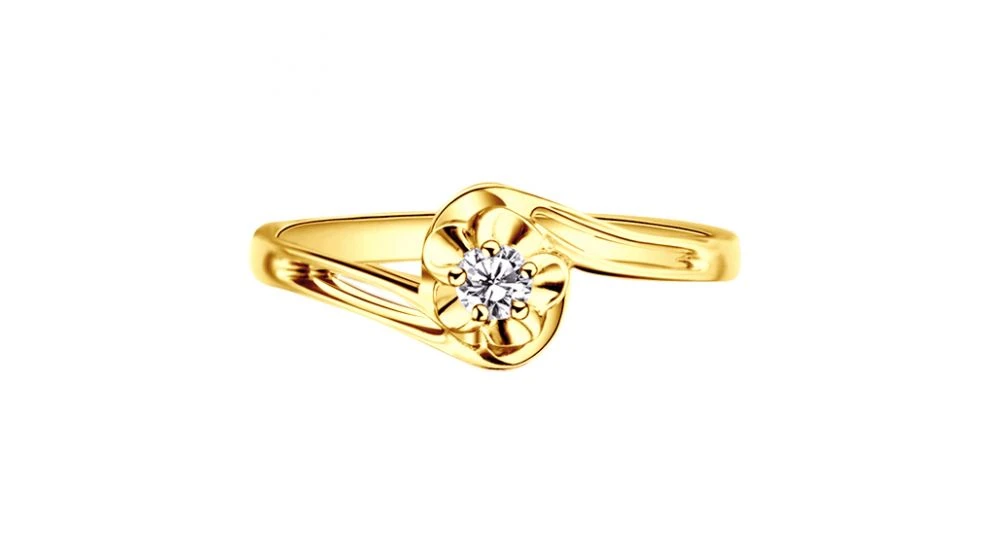 Solitaire Bague Fleur D’amour Diamantée – En Or Jaune – Paul Verlaine